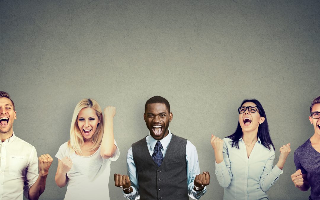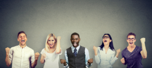 Successful people men and women are celebrating a victory